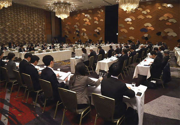 平成30年2月22日、千葉県宅建政治連盟は、自民党千葉県宅地建物等対策議員連盟(略 称、宅建議連。会長:浜田穂積氏)との協議会を三井ガーデンホテル千葉(千葉市中央区) にて開催しました。当日は、千政連からは貝川会長を始め幹事37名、宅建議連からは浜田会長を始め県議会議員30名が出席されました。